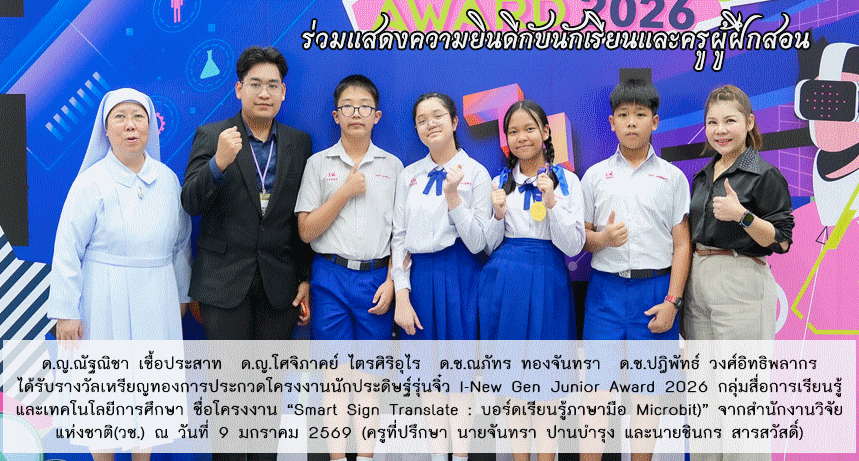 วันศุกร์ที่ 16 มกราคม 2569 โรงเรียนเซนต์ราฟาแอลส่งคณะครูจำนวน 3 ท่าน ได้แก่ ครูพนิดา เกิดสมุทร ครูบังอร วรรณภาผล ครูนัทธมน แสงสว่างเข้ารับโล่ประกาศเกียรติคุณ "ครูดีศรีพระหฤทัยฯ" ณ โรงเรียนพระหฤทัยคอนแวนต์ โอกาสนี้ ขอร่วมแสดงความยินดีกับซิสเตอร์ ดร.กาญจนา สิงห์สา ได้รับการประกาศแต่งตั้งเป็นคุณแม่มหาธิการิณีของคณะพระหฤทัยของพระเยซูเจ้าแห่งกรุงเทพฯในครั้้งนี้ด้วย ขอพระพรจากพระหทัยของพระเยซูคริสต์เจ้าอำนวยพระพรค่ะ [ประมวลภาพ]