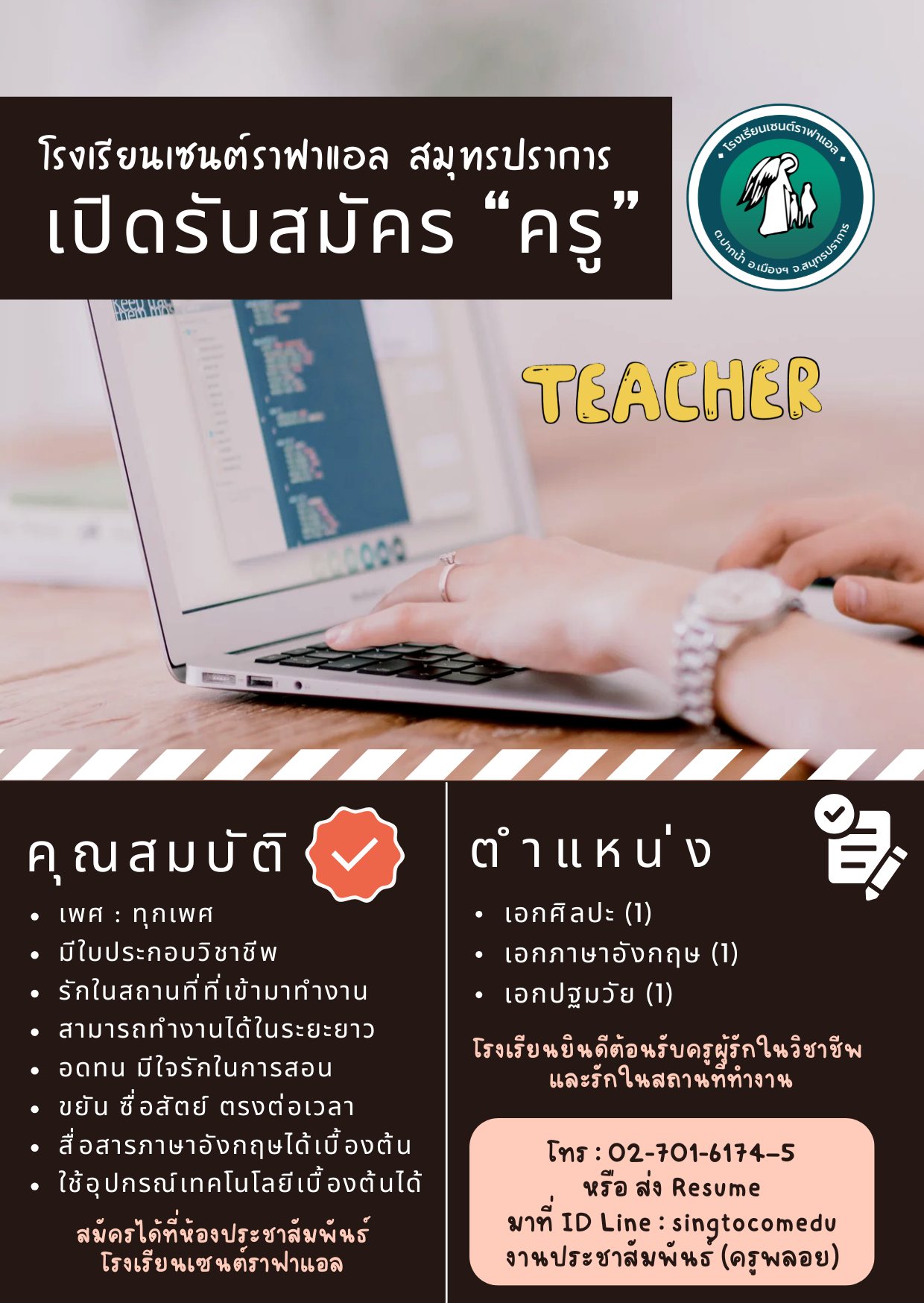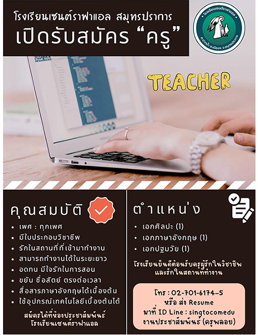 โรงเรียนเซนต์ราฟาแอลเปิดรับสมัครูผู้สอนวิชาภาษาอังกฤษ ศิลปะ ปฐมวัย ปีการศึกษา 2569 [8 มี.ค. 2569]
